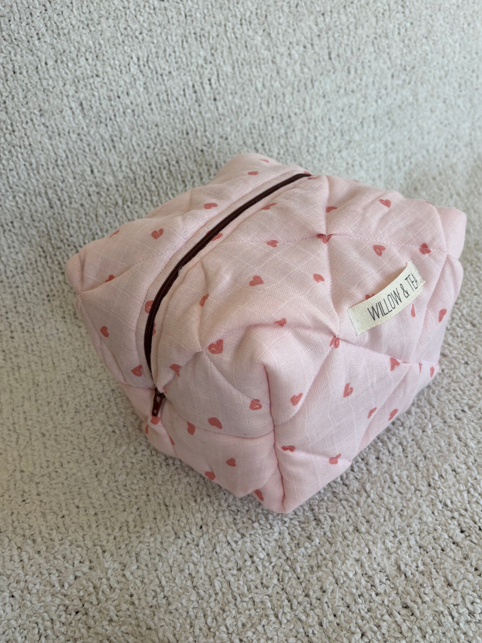 Stay organized in style with our Jumbo Boxy Pouch. This quilted makeup pouch is made with the cutest, girly fabrics, and it’s more spacey than ever. It's the perfect size to fit all of your skincare and makeup essentials, making it ideal for travel or adding a touch of cuteness to your bathroom or nightstand. Keep all your essentials in one convenient place with this chic and functional pouch.